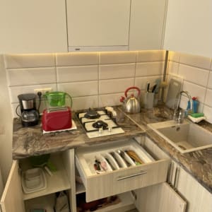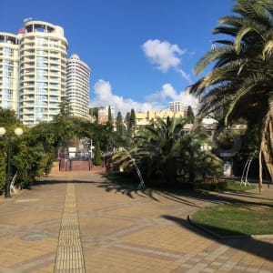 В самом центре города!!! Вокруг 5-ти звездочные отели( Хаятт, Пульман, Меркури, где цена стартует от 40т.₽ за сутки) А также : Художественный музей, Филармония с потрясающим хвойным парком, Собор Архангела Михаила(1890 г.п.), церковь Иверской Божией Матери, Парк Дендрарий, Цирк, Зимний театр, КЗ Фестивальный , Морпорт , парк Ривьера, красивейшая пешеходная улица Навагинская... До всех знаковых мест можно прогуляться пешком!!! Дом моря 10-12 минут по Морскому переулку, на котором находятся : магазины , кафе, рестораны, аптеки и Сбербанк.