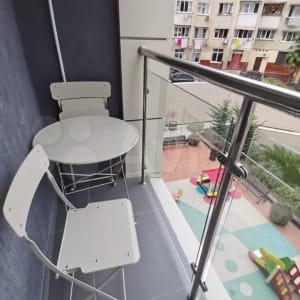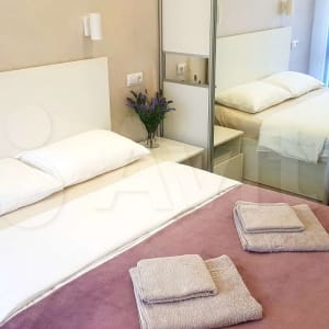 Две комнаты: спальня и кухня-гостиная с раскладывающимся диваном. Уют и комфорт дополнен прекрасным видом из окна на море и ухоженный внутренний двор жилого комплекса. На небольшом открытом балконе есть столик со стульями для приятного время препровождения.