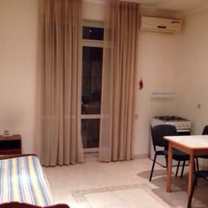 Недалеко от моря 300 м.Есть кондиционер,Отопление автономное. Телевизор. Холодильник. Газовая плита.