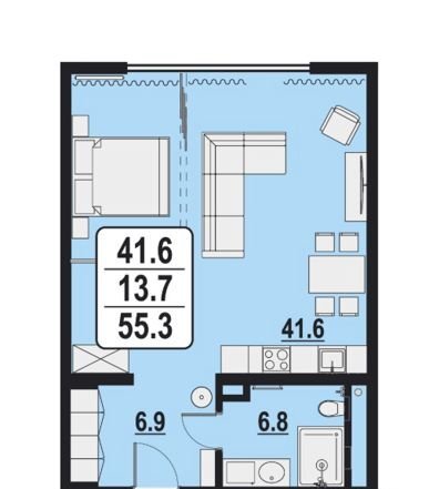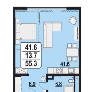 - Общая площадь: 55 м²