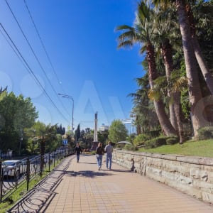 До пешеходной улицы Навагинской 5 минут пешим шагом, вокруг красивые парки и скверы с пальмами со всех сторон.