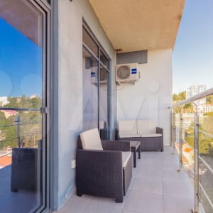 Понарамные витражные окна в пол, бoльшая терасса со стеклянным ограждением и шикарным открытым видом на море и отели премиум класса!