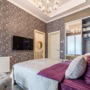Квартира оснащена самыми современными системами климат-контроля, электронным замком (открытие замка по коду), смарт-ТВ, Wi-Fi и интернет со скоростью 100 Мбит/с, укомплектована всей бытовой техникой. При необходимости предоставляется детская кровать и стульчик.