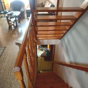 Отопление: либо электро котлом с системой радиаторов, либо более экономичным способом - твердотопливной печью, которая аккуратно установлена под лестницей.
