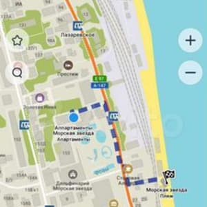 до пляжа Морская звезда всего 400 м. по ровной местности!