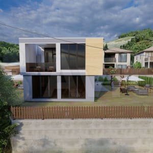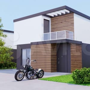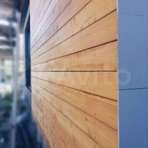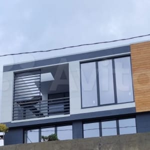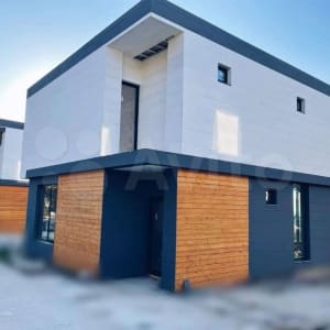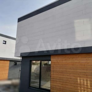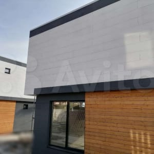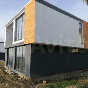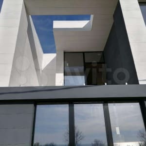 Отделка японским фасадом kmew, элементы из натурального дерева. Панарамные аллюминивые окна профиль АLT 65.
