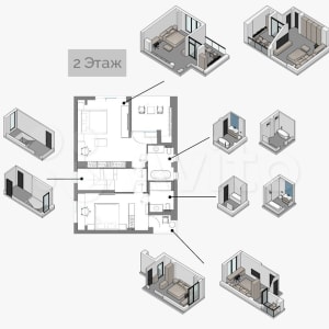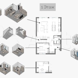 2 этажа, 3 спальни, 3 туалета, зал,кухня, 2 балкона
