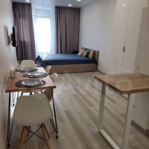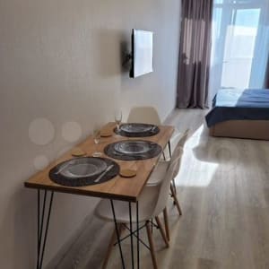 От собственника. Сдам студию на длительный срок 32м2 в Адлере, район Курортного городка, в комплексе бизнес-класса, ЖК "Морская симфония". Квартира нахадится на 2 этаже с видом на море. Дорогой ремонт. Всё новое, никто не жил. 4 спальных места: двухспальная кровать и диван. Есть вся необходимая для проживания мебель (шкафы для хранения, кухня с барной стойкой, стол и стулья, прихожая и др.). Квартира укомплектована техникой (большой холодильник No Frost, стиральная и посудомоечная машины, микроволновая печь, духовой шкаф, варочная панель, чайник, тостер, фен, телевизор, кондиционер). Есть посуда, утюг и гладильная доска. В доме открылся магазин "Перекресток", рядом много других. Во дворе есть свободные парковочные места. На территории комплекса находится бассейн, детские и спортивные площадки. До моря по прямой - 500 метров, до ж/д вокзала Адлер - 7 минут на транспорте, до аэропорта - 10 минут на транспорте.